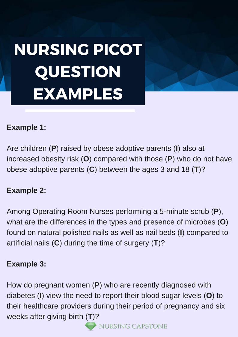 - Search: experts look for each PICOT question nursing individually.